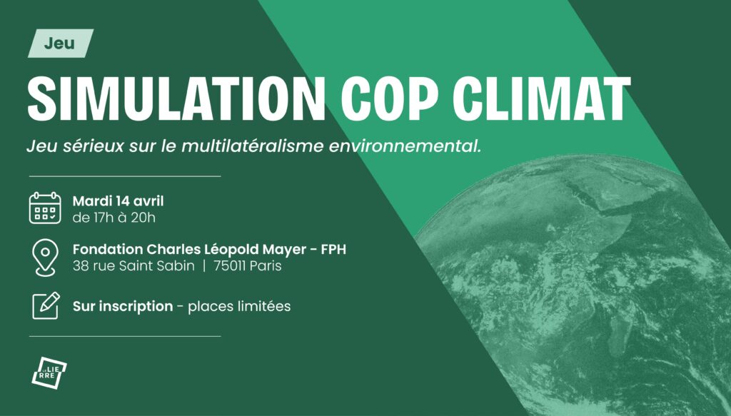 Le mardi 14 avril à Paris : Simulation de COP climat. Jeu sérieux sur le multilatéralisme environnemental.